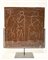 Sandro Cherchi Lastra in vetro decorata a graffito su fondo marrone. Firmata in