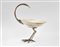 Coppetta Art Déco in agata con piede e presa in argento a guisa di fenicottero, titolo 800, occhi inseriti a cabochon in pietra ambrata. Milano, anni '70ca. (h cm 14; d cm 10)