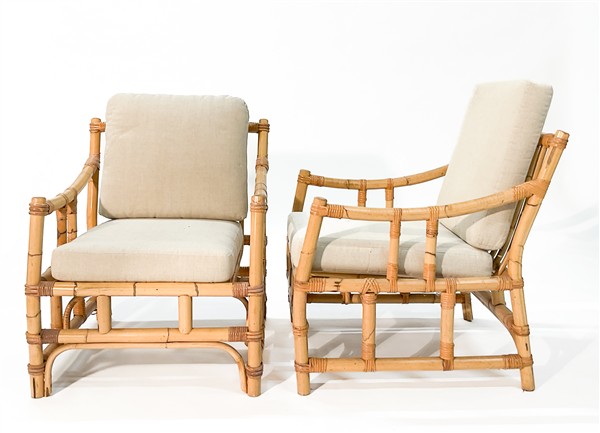 Vivai del Sud (Attribuito) Coppia di poltrone in giunco. Italia, anni '70. (dife