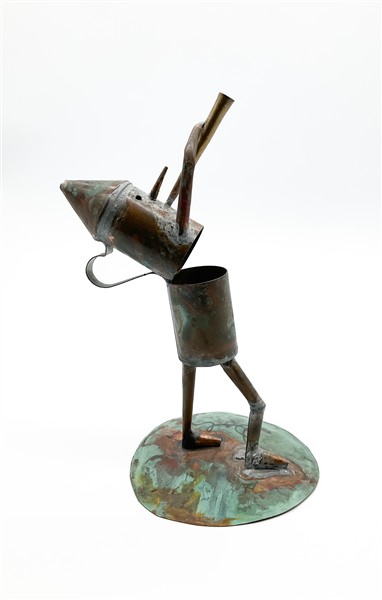 Sculturina in lamina di rame. Firmata alla base e iscritta al retro "S-TT-3287". (h cm 23)