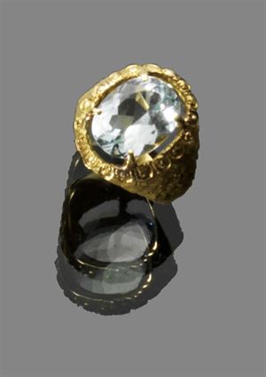 ANELLO Anello in oro giallo con acquamarina di taglio ovale Peso gr 7,60...