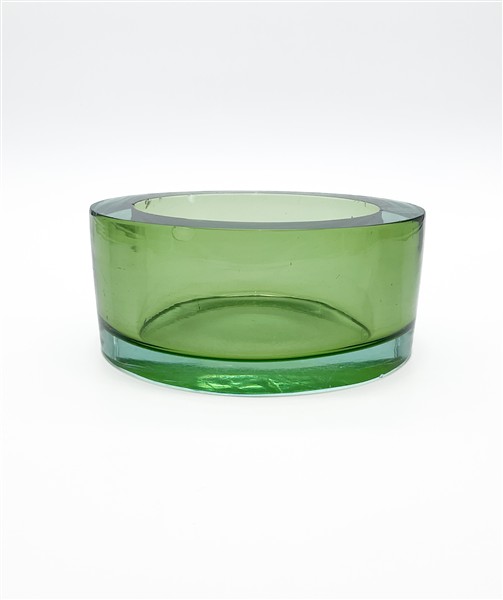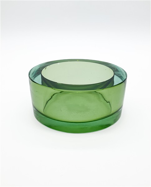 Mario Pinzoni (Attribuito) Centrotavola in cristallo di forte spessore verdino.