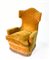 Poltrona bergère con fusto in legno, gambe troncoconiche e rivestimento in velluto color senape a frange. Italia, anni '30/'40. (cm 78x108x92) (lievi difetti)