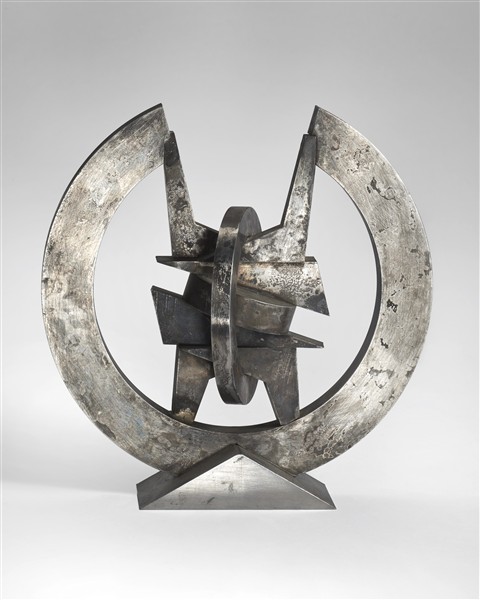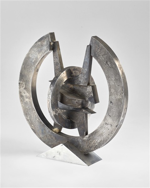 Scultura in acciaio fresato, tornito e saldato. Milano, anni '70. (cm 22x20,5)