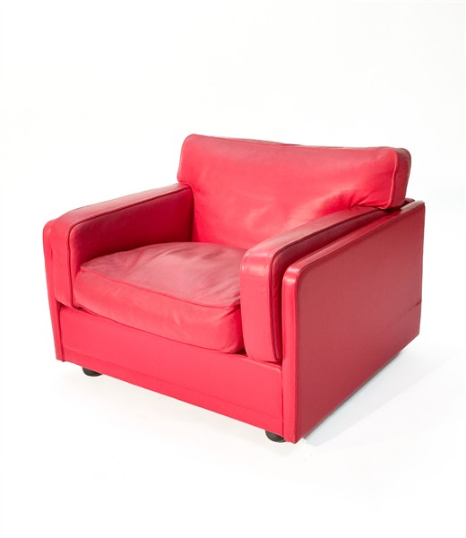 Poltrona modello "Socrate". 1991. Pelle rossa. Recante marchio del produttore. (cm 100x85x96) (difetti)