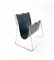 Portariviste in metallo cromato e simil pelle nera. (cm 49x54x38)