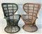 Due bergère. Produzione Casa e Giardino, Milano, anni '40/'50. Manao, giunco, malacca e scortecciato. Una riverniciata in verde. (cm 87x129x75) (difetti e mancanze)