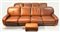 Divano componibile composto da otto moduli e un poggiapiedi in pelle marrone. Italia, anni '70/'80. (difetti)