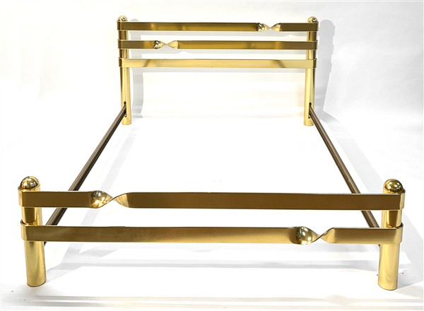 Letto matrimoniale. Esecuzione Frigerio di Desio, Italia, anni '70. Ottone. (cm 167x95x213)