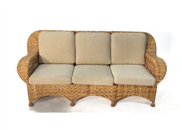 Grande divano in giunco. Italia, anni '70. (cm 196x85x80) (difetti)