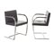 Coppia di poltrone modello "Brno". Produzione Knoll, U.S.A. anni '70. Acciaio verniciato grigio metallizzato e rivestimento in similpelle nera. (cm 58x76x54) (difetti)