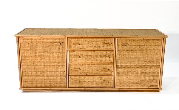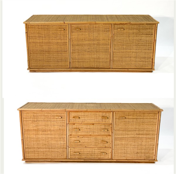 Vivai del Sud (Attribuito) Lotto composto da due credenze in rattan e giunco. It