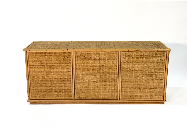 Lotto composto da due credenze in rattan e giunco. Italia, anni '70. (lievi difetti)