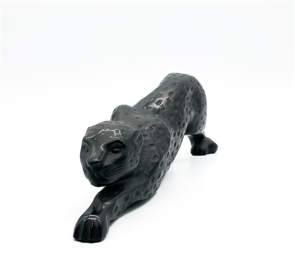Mari-Claude Lalique "Pantera Zeila" Scultura in vetro fumé pressato in forma. Fi