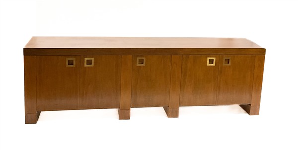 Credenza a cinque ante in legno impiallacciato con maniglie in ottone. Italia,