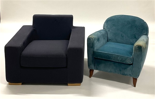 Lotto composto da una poltrona Natuzzi degli anni 2000 e una rivestita in velluto azzurro degli anni '50. (difetti)