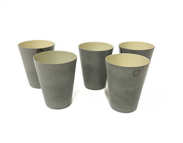 Lotto di cinque bicchieri in vetro soffiato incamiciato grigio satinato all'esterno e pagliesco all'interno. Murano, 2000. Firmati e datati all'acido sotto la base.