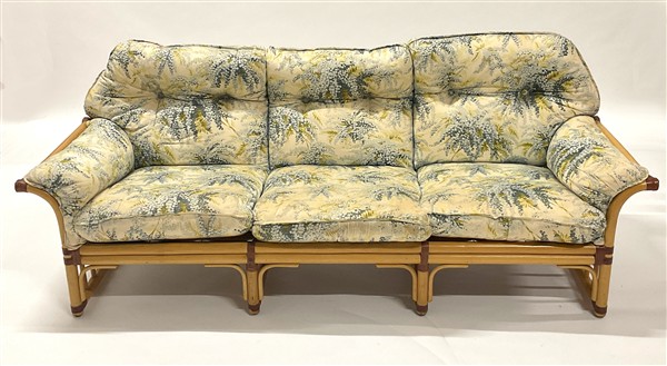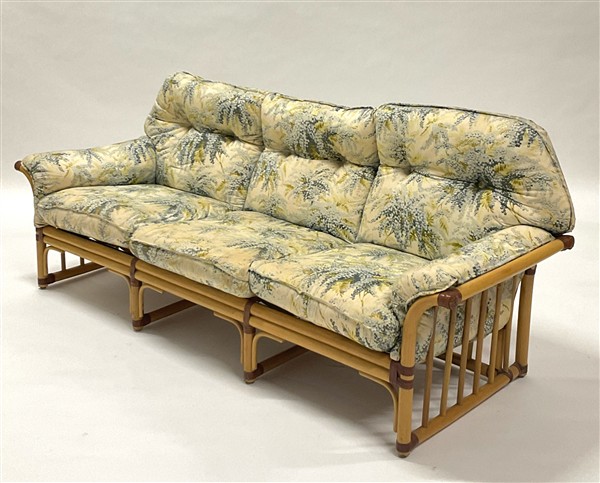 Lotto 1395 | Vivai del Sud (Attribuito) Divano in giunco e cuoio. Italia, anni '70. (cm 208x7