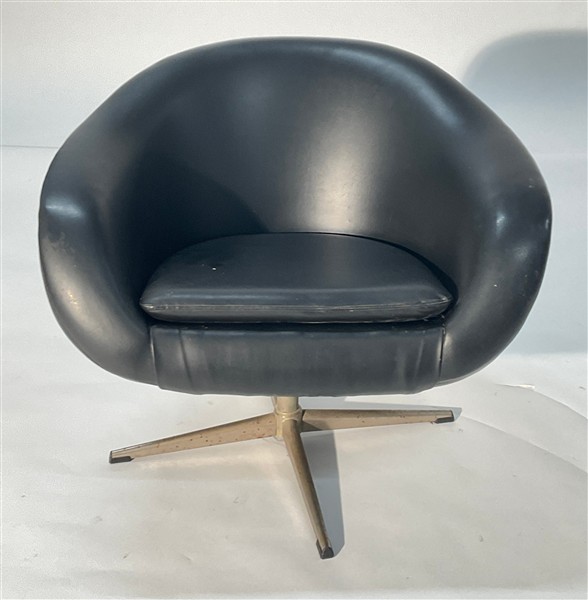 Poltroncina in vinilpelle nera e metallo cromato. Italia, anni '60/'70. (difett