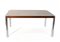 Tavolo con piano in legno massello e impiallacciato con gambe in metallo cromato. Italia, anni '70. (cm 165,5x76x95) (difetti)