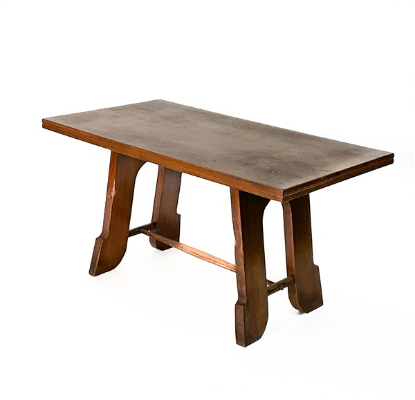 Tavolo in legno massello con profilo del piano intagliato. (cm 150x79x80) (dife