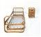 Lotto composto da un letto con sottoletto estraibile e un comodino a tre cassetti in in giunco. Italia, anni '60. (letto cm 92x216x72; comodino cm 46x75x36) (difetti)