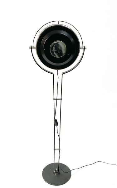 Lampada da terra in metallo verniciato nero e cromato. Italia, anni '70/'80. (h cm 130) (difetti e mancanze)