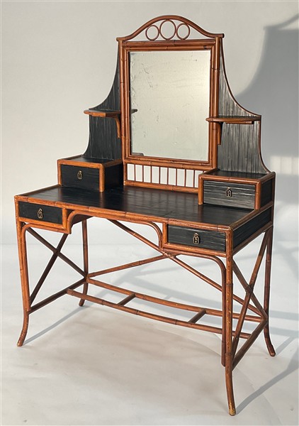 Vivai del Sud (Attribuito) Mobile toilette in bambù dipinto con due cassetti e d
