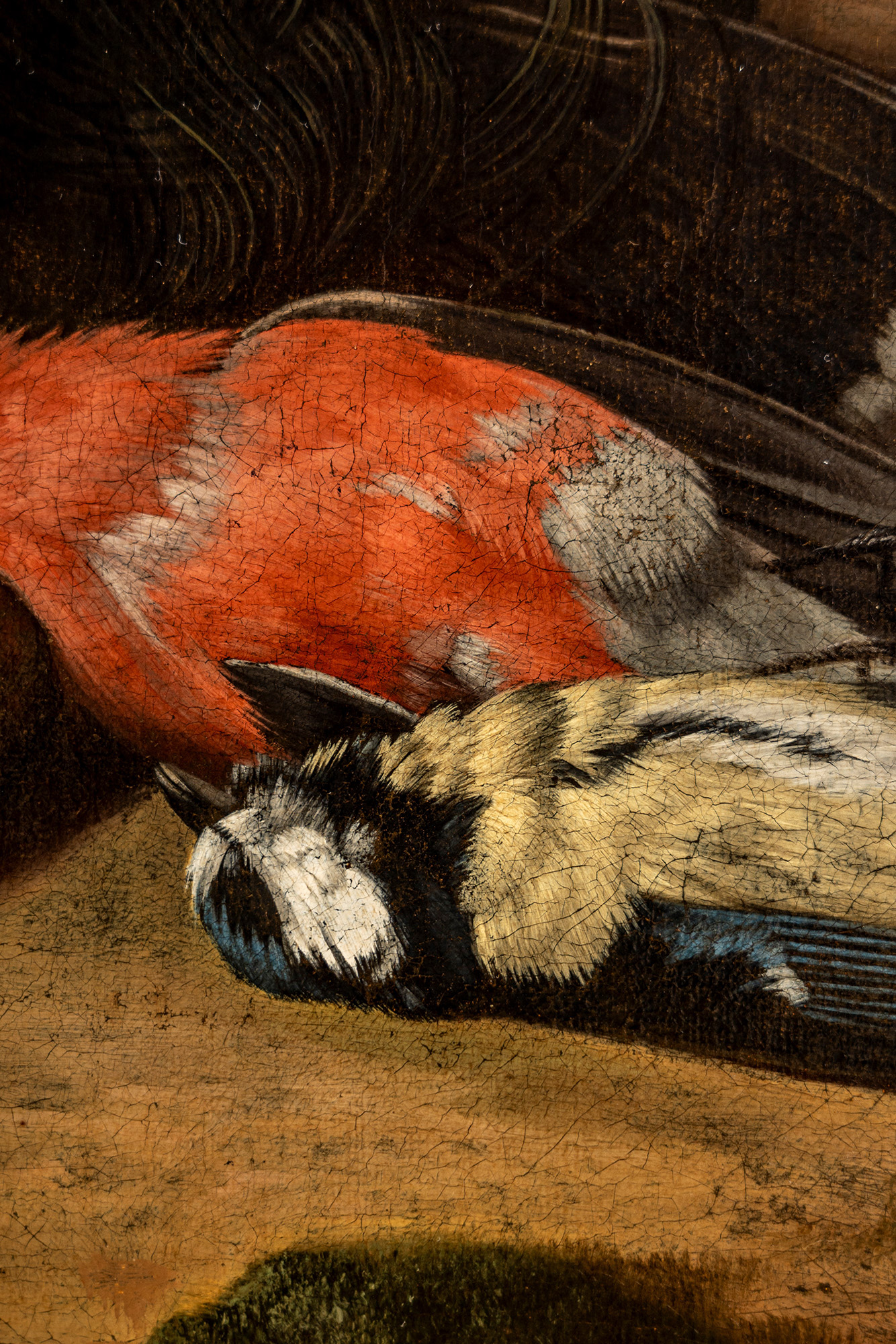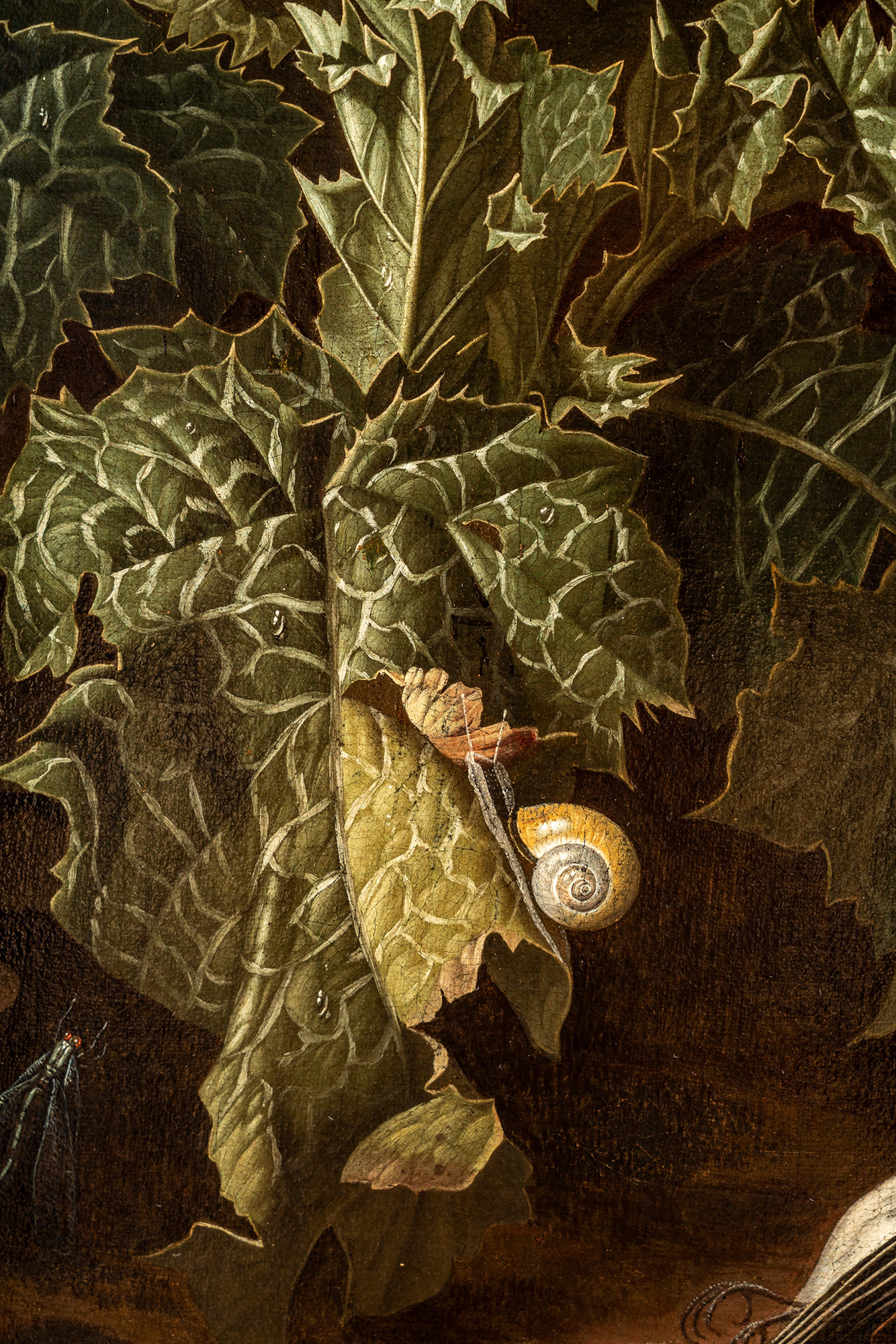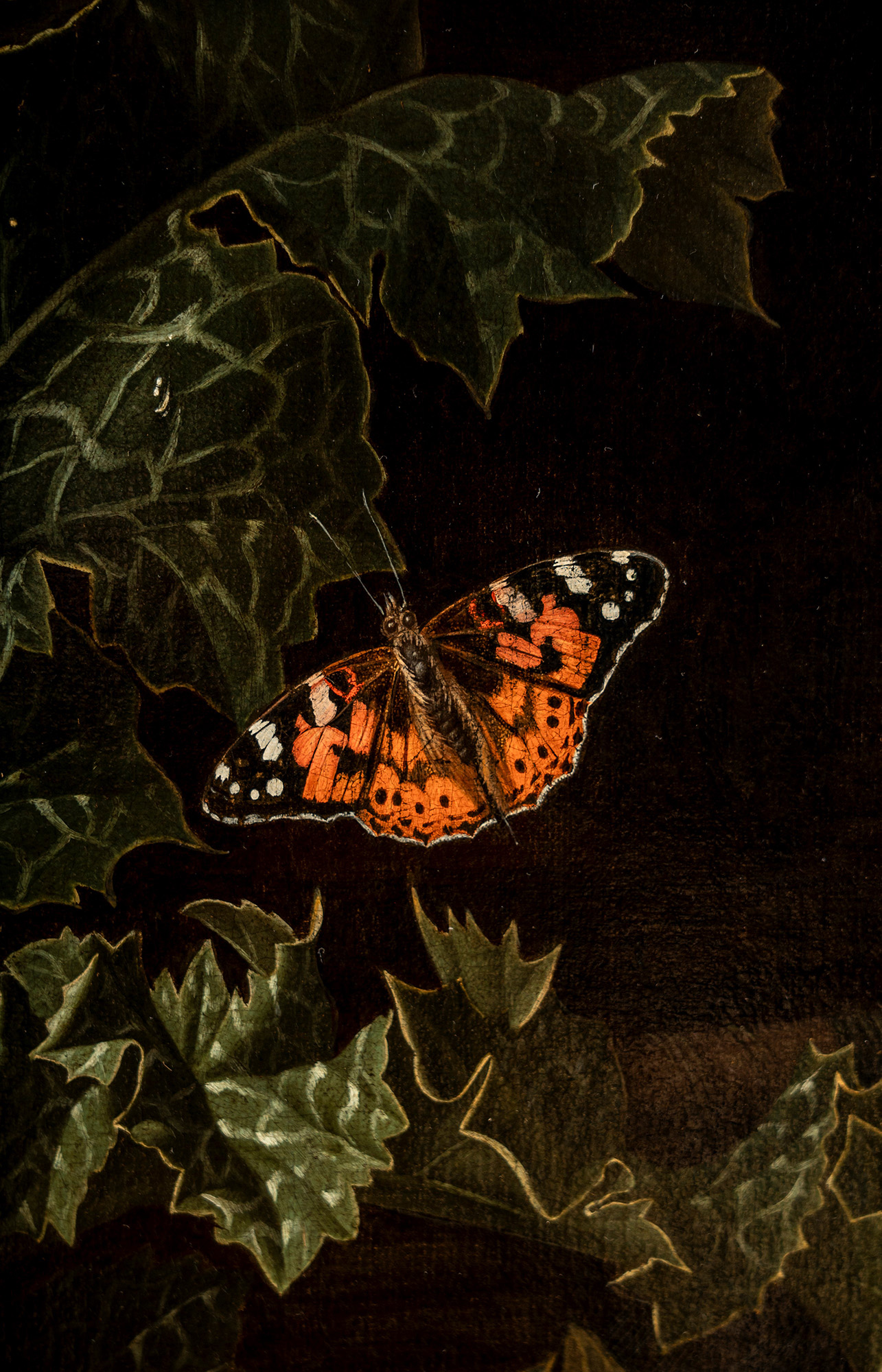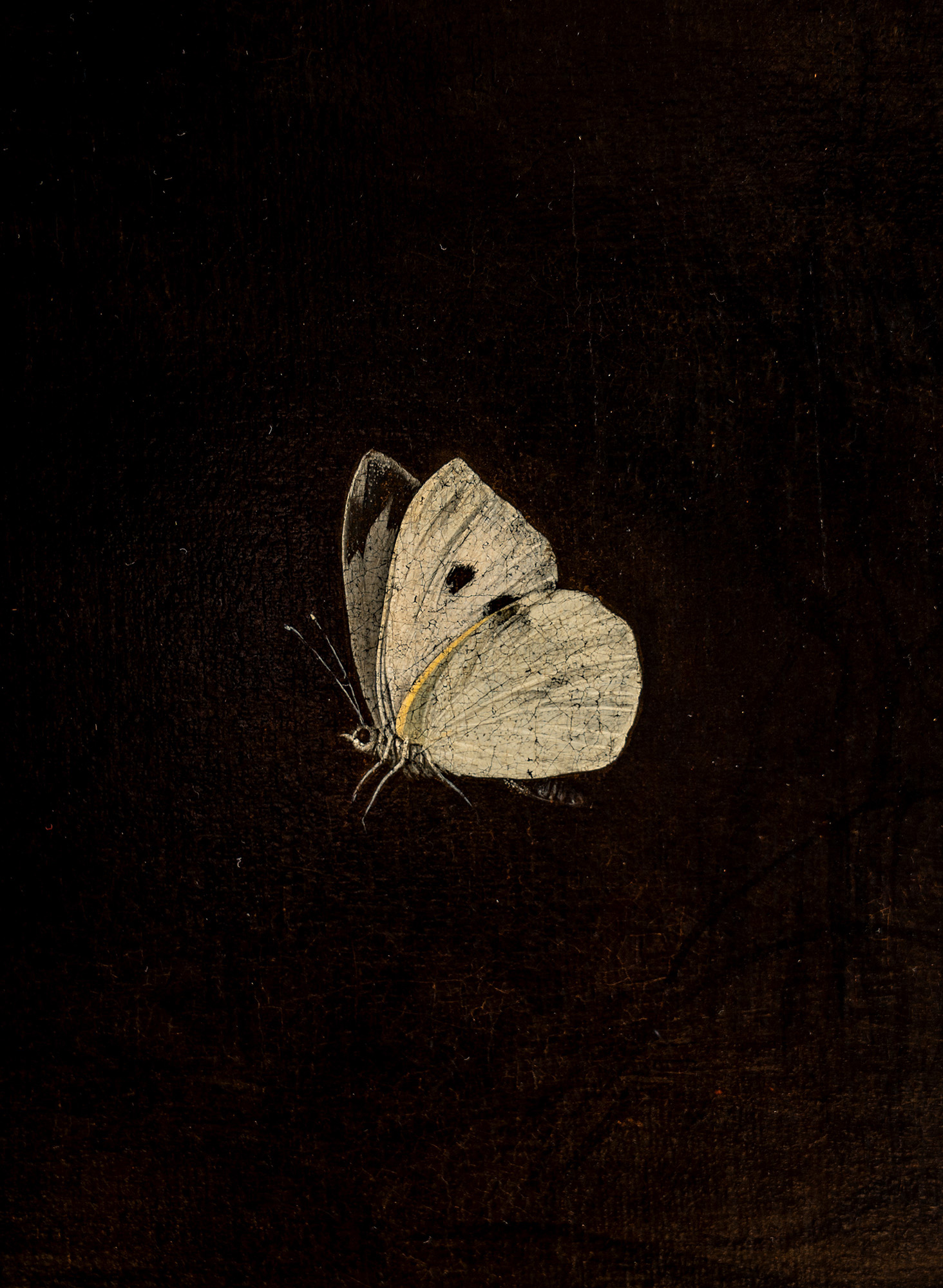 Isaac Denies (1647 - 1690) - Natura morta con farfalle e cardellini en plein air