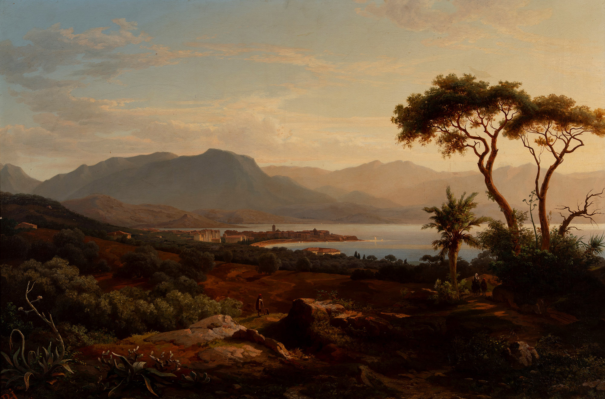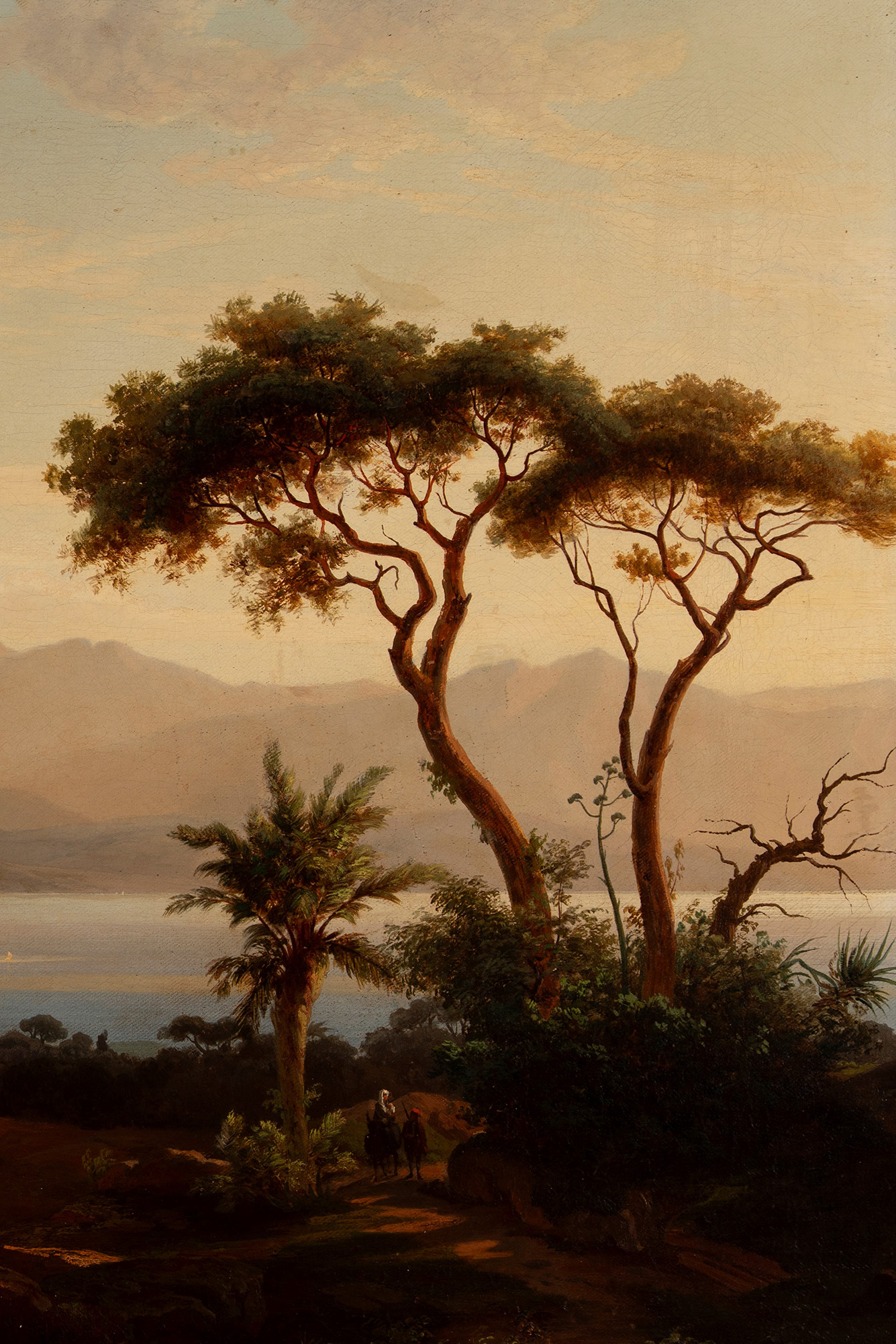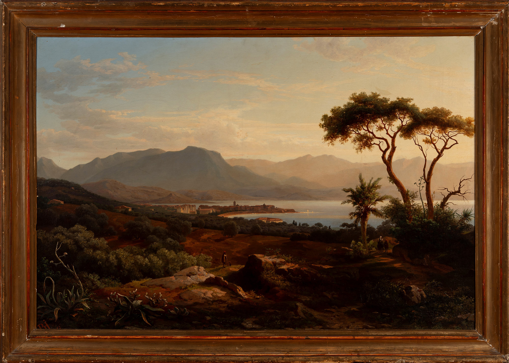 Artista attivo in Italia nel secolo XIX - Veduta costiera con viandanti