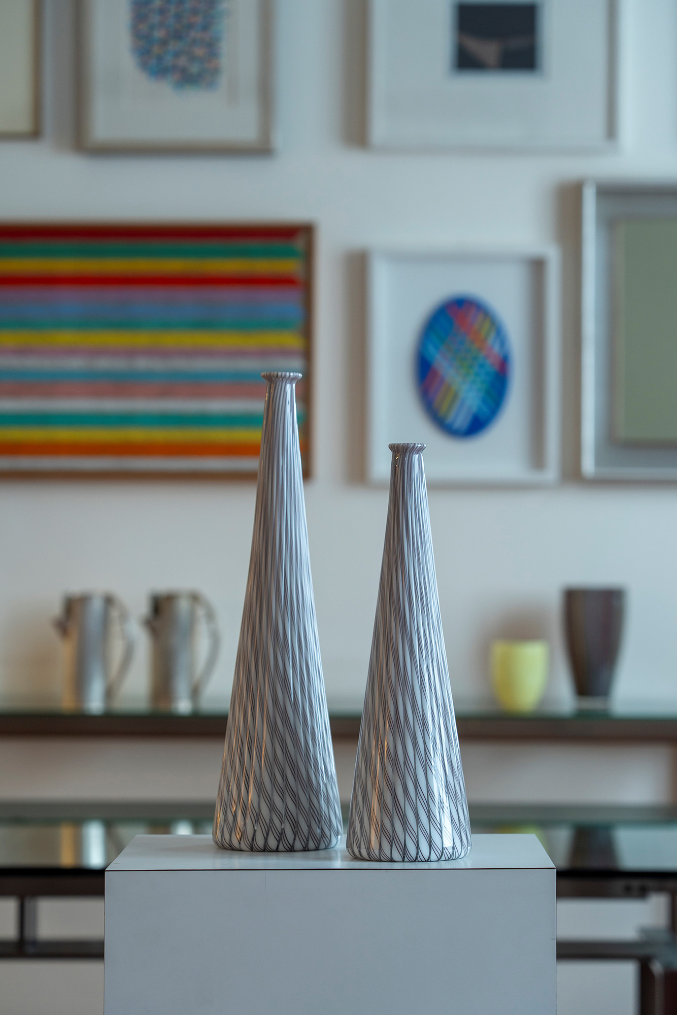 Veart - Coppia di bottiglie con decoro a canne policrome, 1982