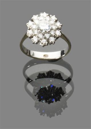ANELLO Anello in oro bianco con brillante ct 0,90 ca contornato da doppia fila di diamanti taglio brillante per complessivi ct 1,10 ca Peso gr 5,30 White gold ring with diamond approx 0.90 kt, surrounded by two rows of brilliant cut diamonds totaling about 1.10 kt Weight 5.30 gr