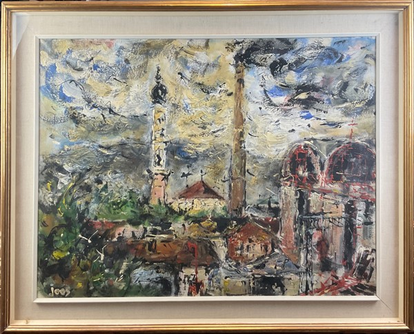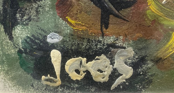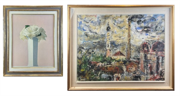 Lotto composto da un olio su compensato di Giorgio Oppi raffigurante vaso di fiori (cm 50x40) firmato e iscritto al retro, e un olio su tela raffigurante paesaggio di Roberto Joos (cm 70x90) firmato in basso a sinistra