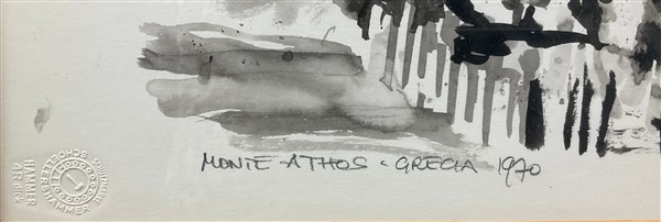 Paul Pennisi "Monte Athos. Grecia" 1970 china su carta cm 33x50 firmato, datato,