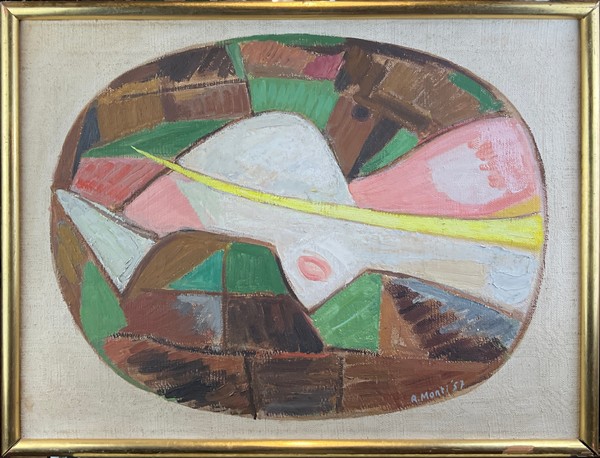 Rolando Monti "Senza titolo" 1957 olio su tela cm 50x65 firmato e datato in bass