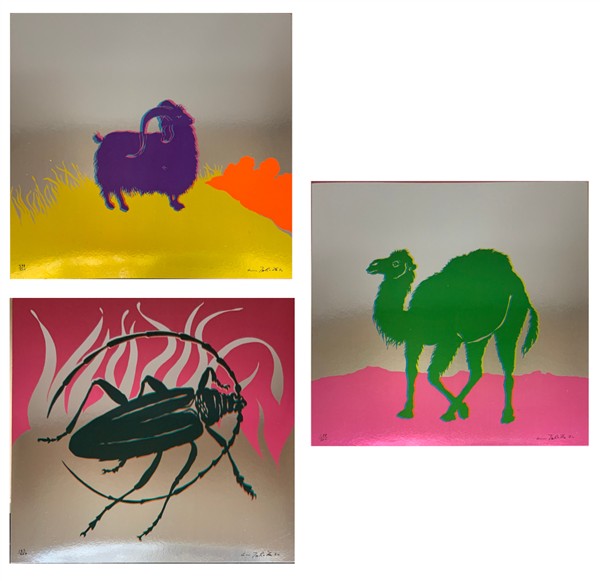 Gino Marotta "Muflone - Dromedario - Scarabeo" 1974 tre serigrafie su cartoncino