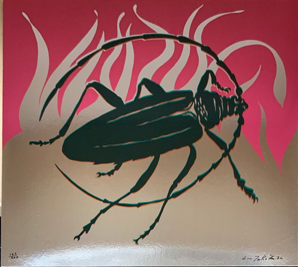 tre serigrafie su cartoncino argentato