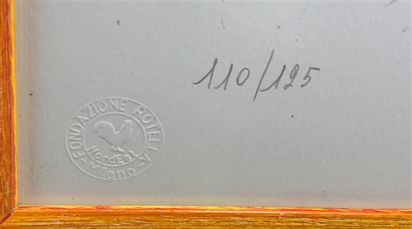 firmato e numerato 110/125 in basso a matita, timbro a secco Fondazione Rotella, Milano in basso a sinistra. In cornice