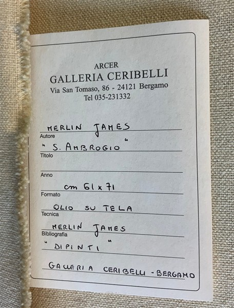 James Merlin "Milano (S. Ambrogio)" 2002 acrilico su tela cm 61x71 firmato e loc