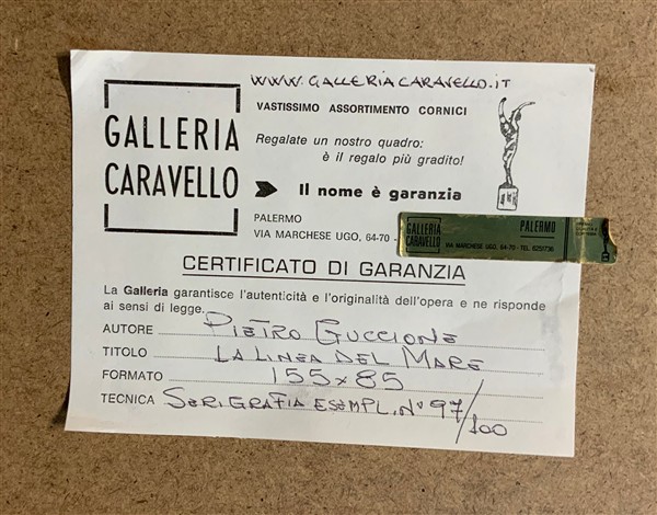 Piero Guccione "La linea del mare" serigrafia a colori cm 83x154 firmata e nume