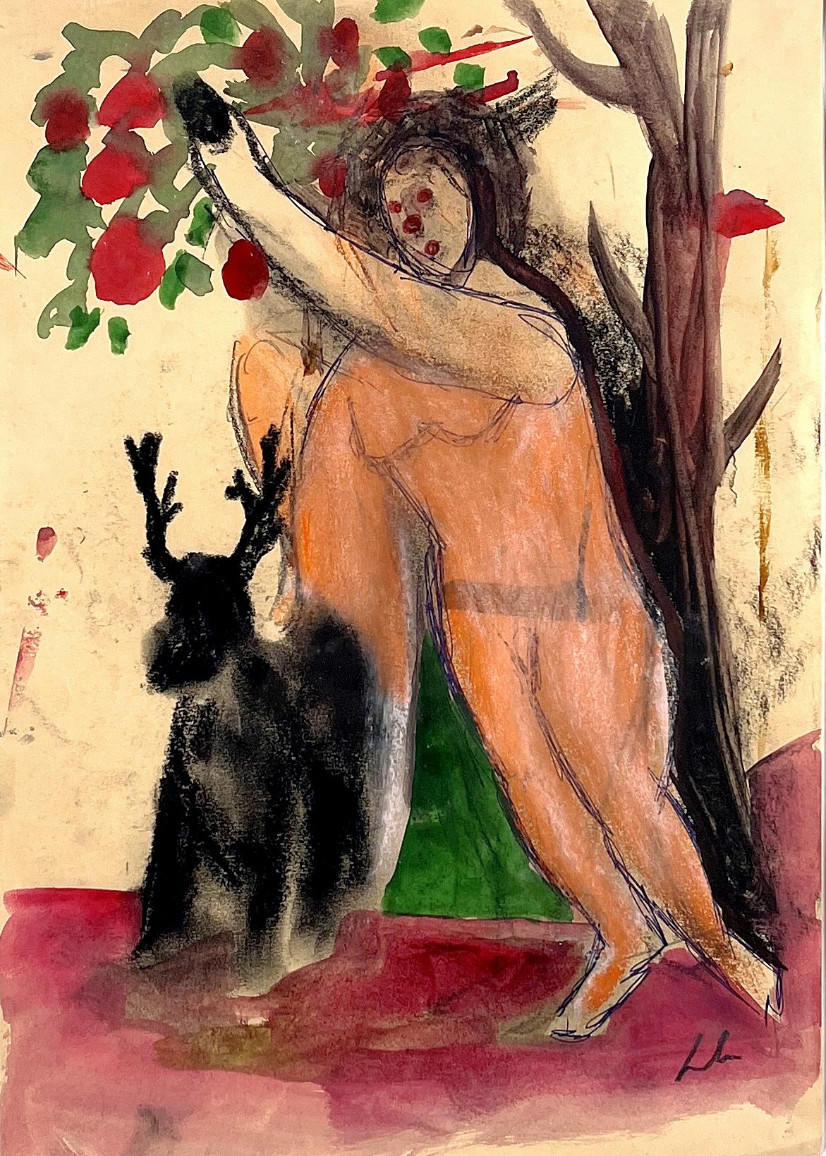Tecnica mista su carta, cm 34x24 (con cornice cm 60,5x48,5)
