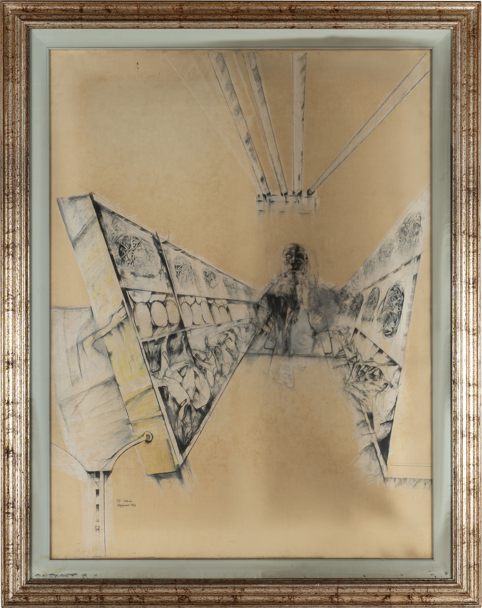 RENZO VESPIGNANI(1924 - 2001)71 - Vetrina1964Tecnica mista su carta applicata su tela122 x 91,5 cmFirmata, datata e titolata in basso a sinistraPROVENIENZA:Collezione privata, Biella