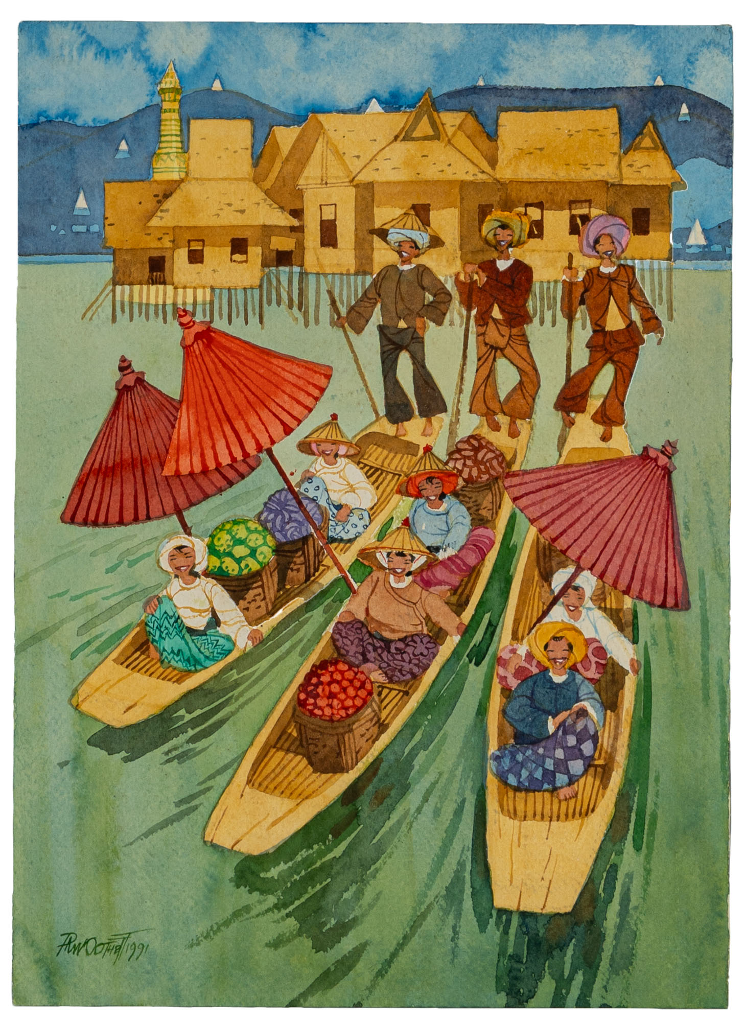 PAW OO THETT(1936 - 1993)Senza titolo1991Acquarello su carta38 x 27,5 cmFirmata e datata in basso a sinistraPROVENIENZA:Collezione privata, Sondrio