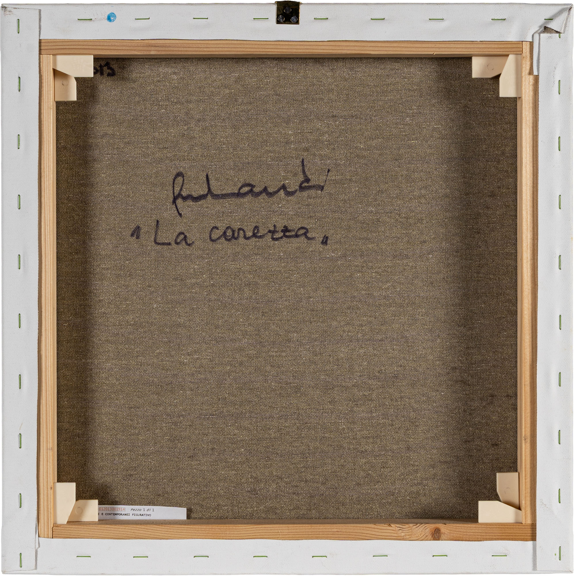 BRUNO LANDI(1941)La carezza2012Olio su tela50 x 50 cmFirmato in basso a destraFirma e titolo al retroOpera accompagnata da certificato di autenticità a cura dell'Archivio Fotografico Generale delle Opere di Bruno LandiPROVENIENZA:Collezione privata, Alessandria