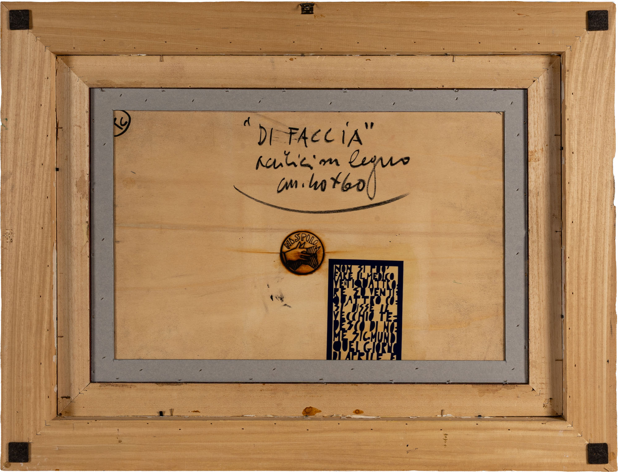 UGO NESPOLO(1941)Di facciaAcrilico su legno60 x 40 cmFirmato in alto a sinistraFirma, titolo e timbro dell'artista al retroOpera accompagnata da certificato di autenticità firmato dall'artistaPROVENIENZA:Collezione privata, Alessandria