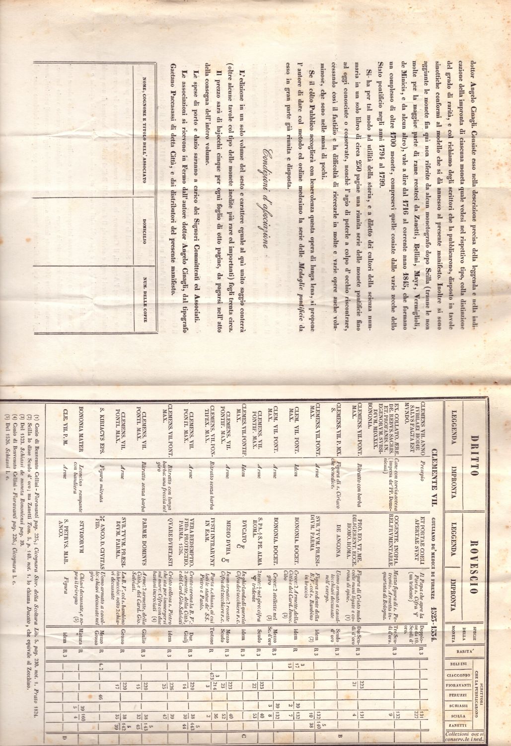[Manoscritto Numismatica] Angelo Cinagli, 1848