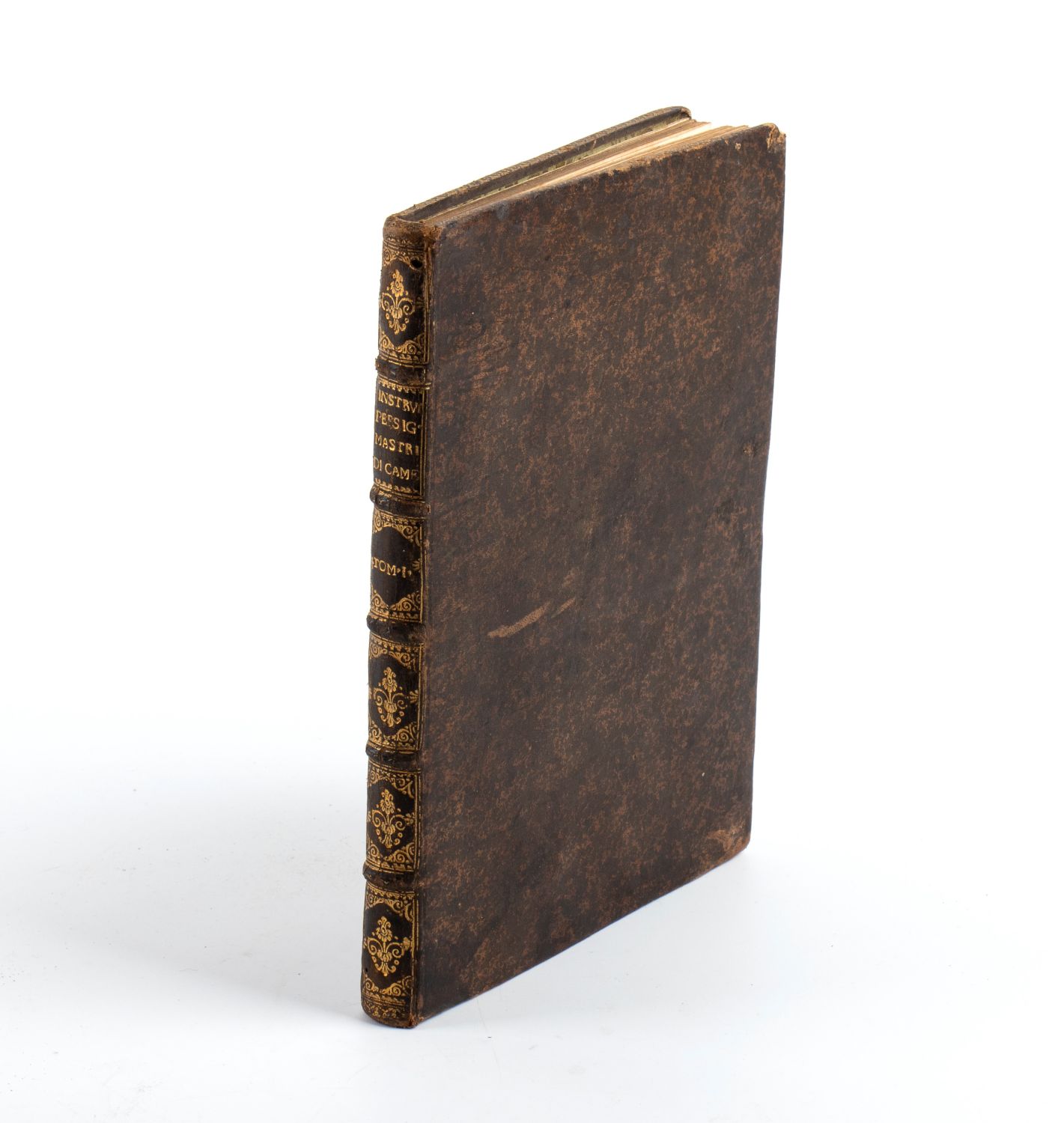 In 4° piccolo, pp.52 numerate+5 pagine di indice. Legatura coeva in pelle. Tagli dorati. Alla fine del volume a stampa è attaccato un piccolo foglio con indicazione della data 1776 nella chiesa di S. Vincenzo e Anastasio.