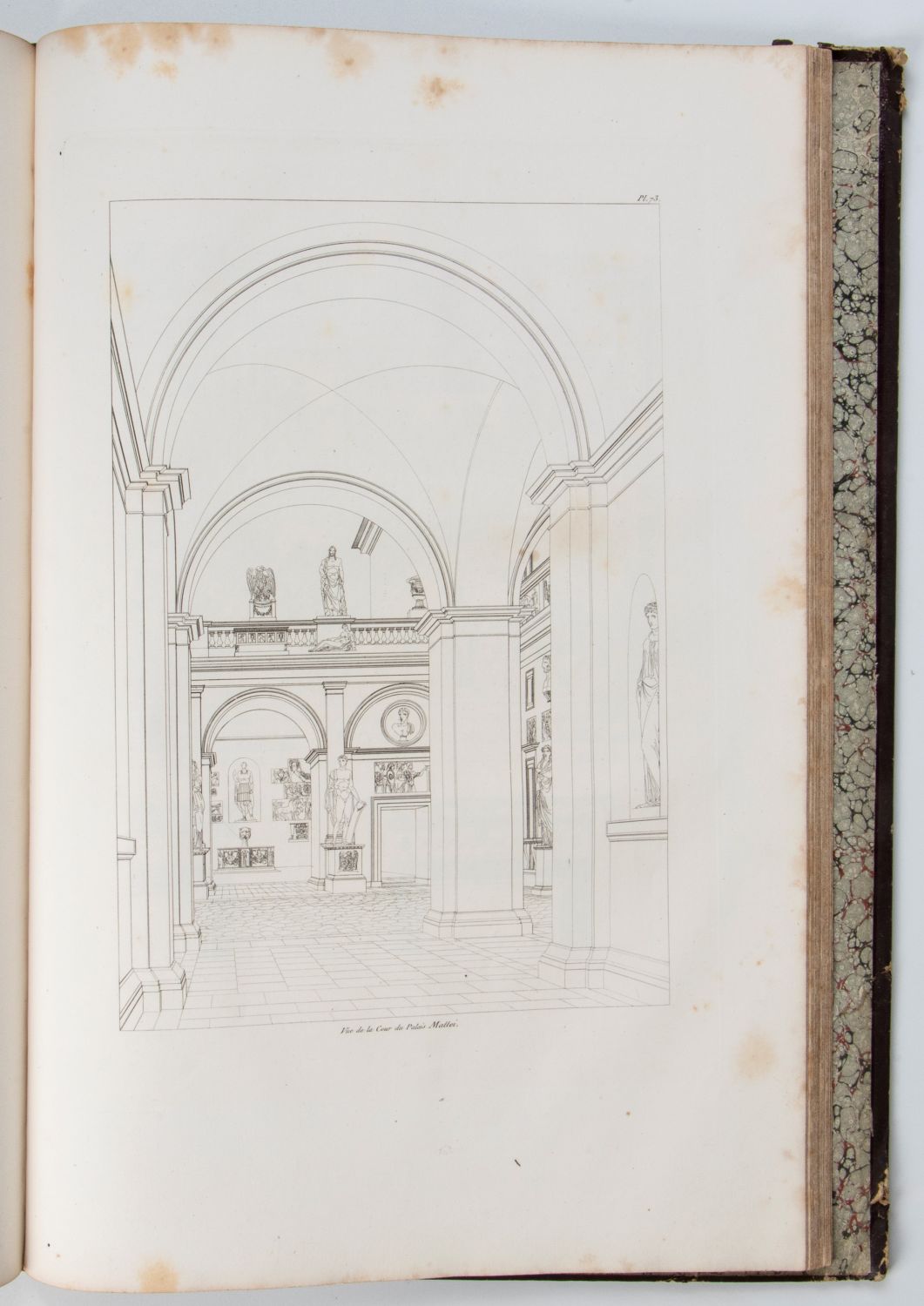 In-folio , pp. 36+100 tavole f.t. incise in delineato di piante vedute, giardini e fontane di ville romane e dintorni, numerate 1-a 100. Gore diffuse. Legatura in mz pelle con titoli al dorso.Seconda edizione della celebre opera di architettura degli artisti che avevano soggiornato a Villa Medici. Brunet, IV, 489: "Très-bel ouvr.". Cicognara, 3823: "Opera della più bella e gustosa esecuzione per i disegni e le stampe oltre le giudiziose e dotte illustrazioni fatte da uomini distinti nell'arte". Berlin Kat., 3500 descrive la seconda edizione (Paris, 1830). Edizione originale, rara e ricercata.