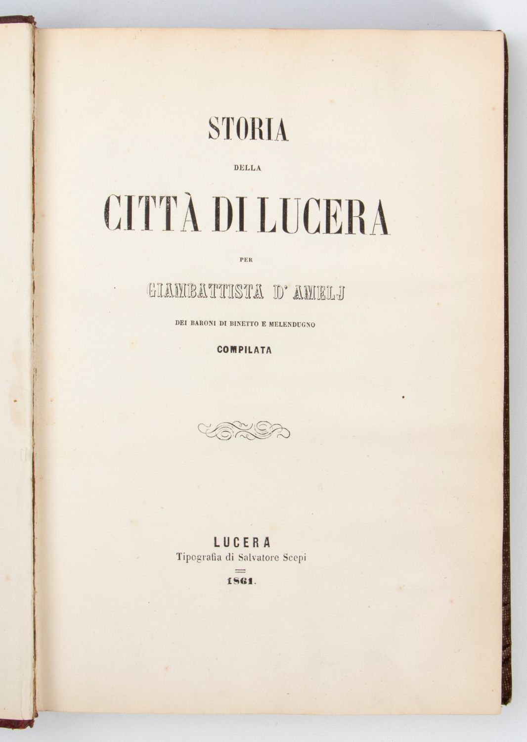 Lotto 91 | D’AMELJ Giambattista. Storia della città di Lucera dei baroni di Binetto e Melendugno, Lucera, Scepi, 1861