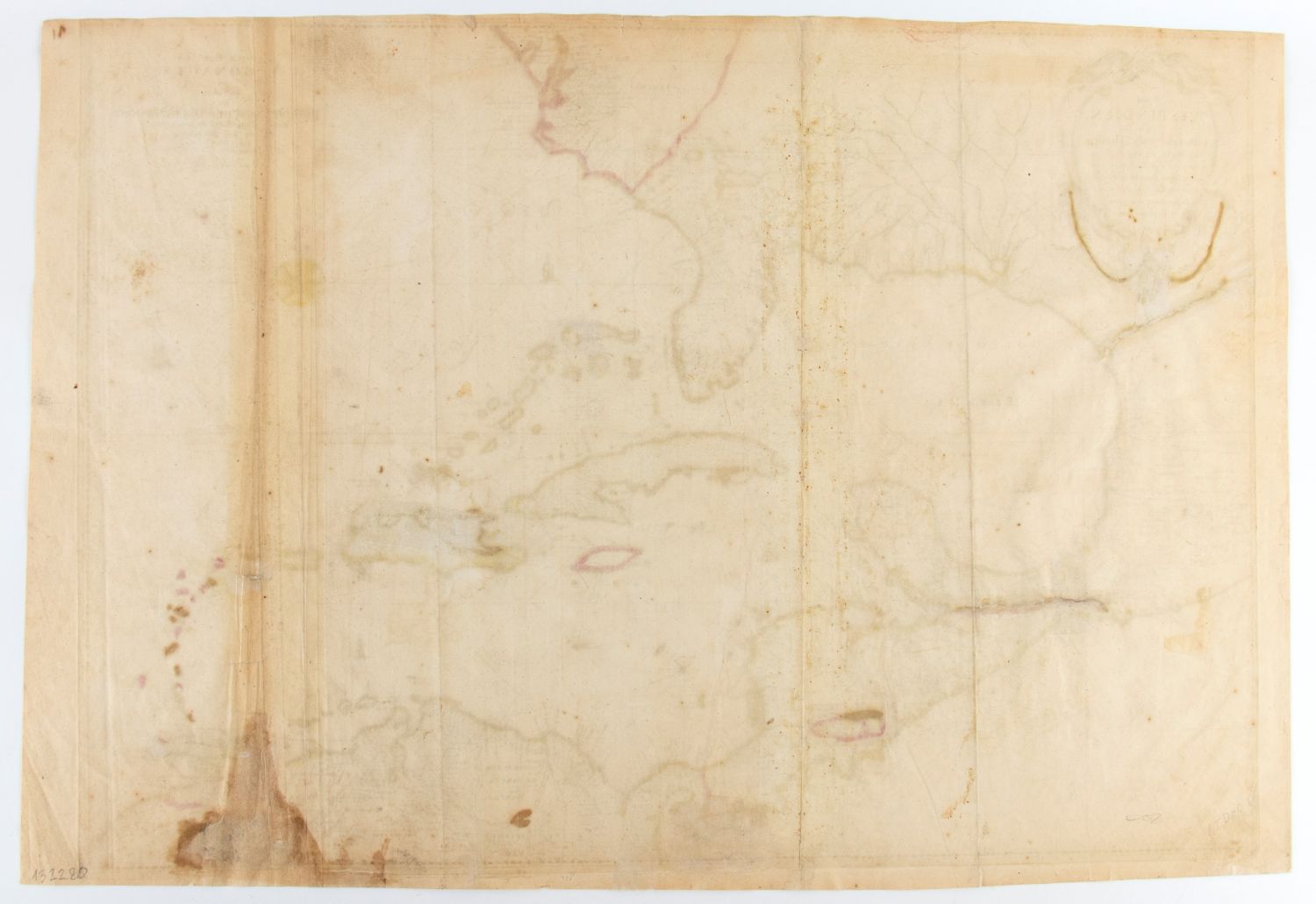 Acquaforte e bulino, 520 x 665 mm (foglio). Rara mappa del Sud-Est degli Stati Uniti e dei Caraibi. Molto bella, forte impressione su carta vergata con filigrana, parzialmente colorata. Foglio con margini preservati. Presenta due pieghe verticali, margini preservati e varii restauri: lacuna vicino al cartiglio in basso a destra ricomposta, riparazioni sul margine sinistro e lungo le pieghe, restauri sul margine inferiore (brevi strappi e piccole lacune ricomposte). Piccoli fori sparsi, alcuni restaurati. Tuttavia nel complesso, la stampa è in buono stato di conservazione.